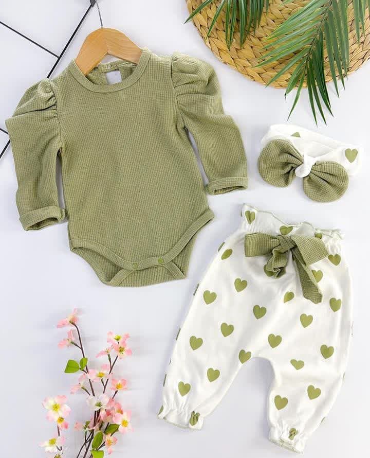 بادی و شلوار و هد مجلسی سبزسه تیکه بیسکوئیتی دلبر دخملونه