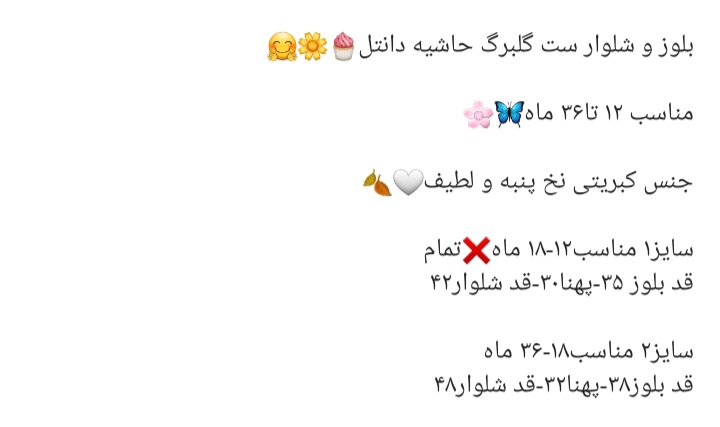سایز ۱ : مناسب ۱۲تا۱۸ ماه